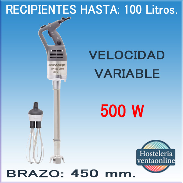DescripciónEste Brazo Triturador-Batidor MP 450 Combi Ultra de Robot Coupe, es especial para uso intensivo, colectividades y catering.