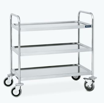 Carros de Servicio con 3 estantes en acero inoxidable con ruedasMEDIDAS: 895x595x950 mm. , 995x595x950 mm. y 1.095x695x950 mm.