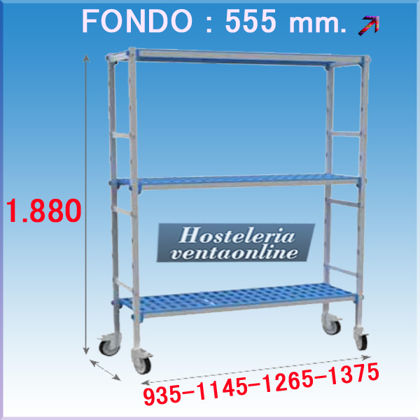 - Código: Estanterías de Aluminio-Polietileno Con Ruedas. Fondo: 555 mm