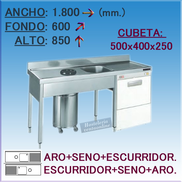 FREGADERO PARA LAVAVAJILLAS CON CUBETA Y ARO DE DESBARAZADO