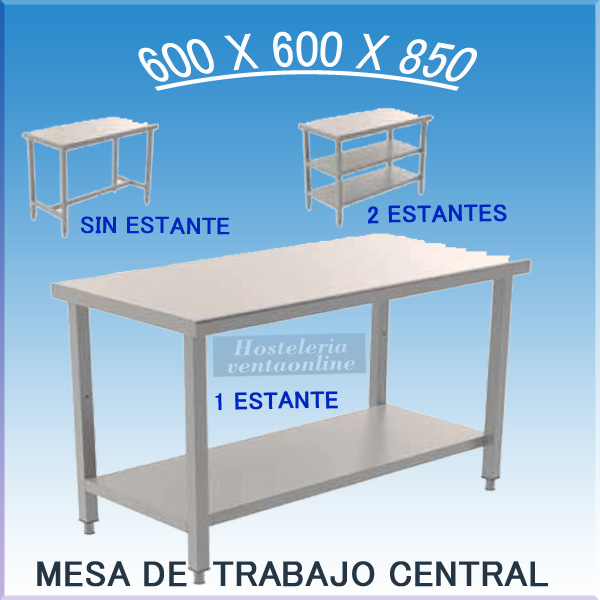 Mesa de Trabajo Central en Acero Inoxidable 600x600x850 mm.