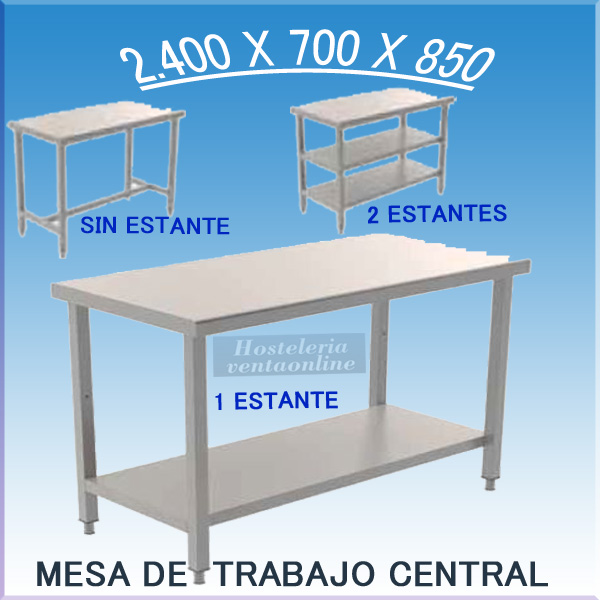 Mesa de Trabajo Central en Acero Inoxidable 2.400x700x850 mm.