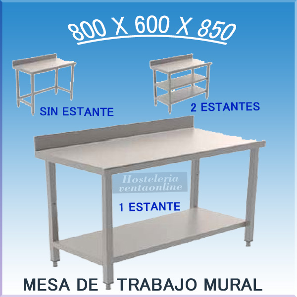 Mesa de Trabajo Mural en Acero Inoxidable 800x600x850 mm.