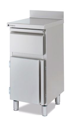 El Mueble Mesa Cafetera MCC-50-T de Coreco, está fabricado en acero inoxidable AISI 304. Está equipado con 1 Tolva y 1 Puerta para guardar utensilios y mantener el orden dentro de la cocina.