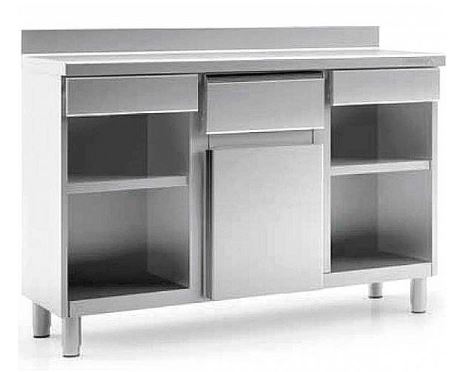 El Mueble Mesa Cafetera MCN-200 de Docriluc, está fabricado en acero inoxidable AISI 304. Está equipado con 1 Tolva, 2 Cajones y 1 Puerta para guardar utensilios y mantener el orden dentro de la cocina.
