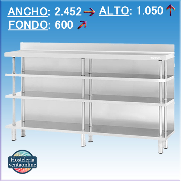 Mueble Mesa Estanteria ME 60/2500 de Infrico fabricado en acero inoxidable AISI 304. La característica principal de este material es que resiste de forma óptima a la corrosión y al uso frecuente.