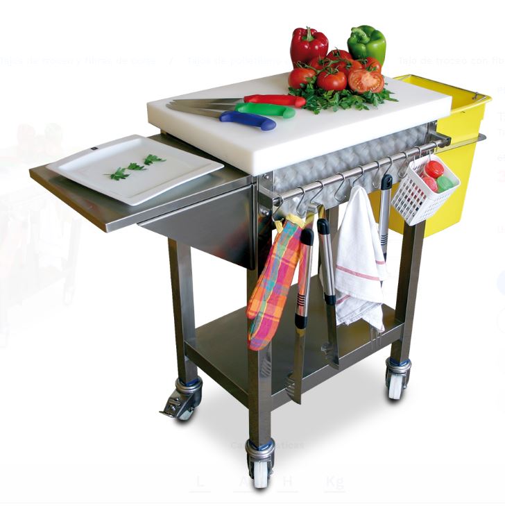 - 2 Ruedas giratorias con freno, de acero inoxidable y superficie de rodadura de nylon. .