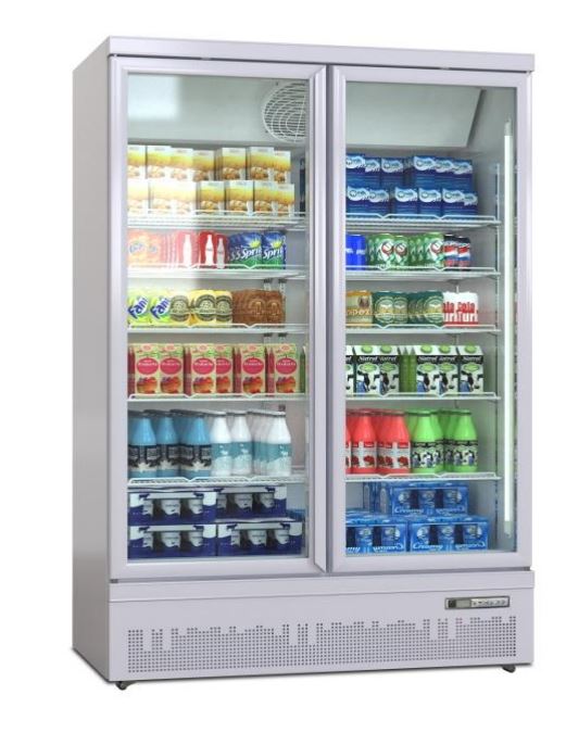 Se utiliza principalmente para enfriar bebidas y productos envasados en tiendas de alimentación, restaurantes, gasolineras o en supermercados. Se suministra con 5 estantes por puerta, porta-precios, Separador de botellas encima de cada estante, con 4 ruedas e Iluminación interior LED.