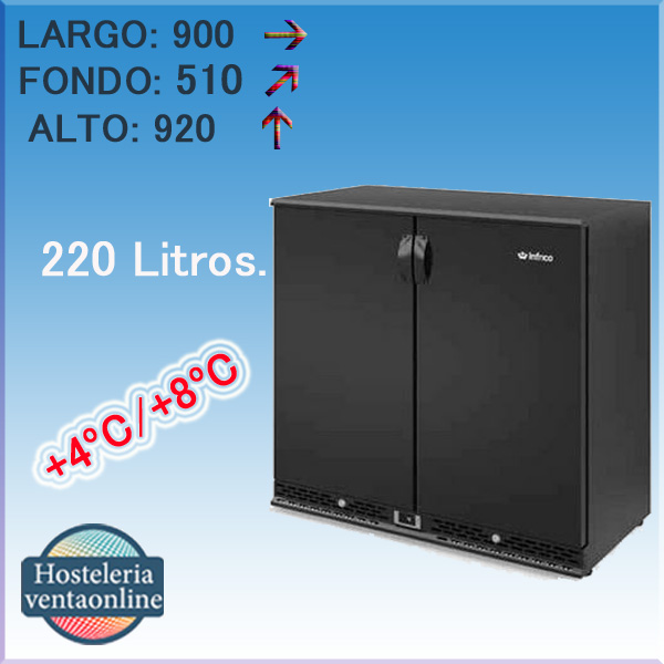 Armario de conservacion de 2 puertas ciegas y capacidad de 220 litros, con medidas: 900x510x920 mm. Puertas ciegas.