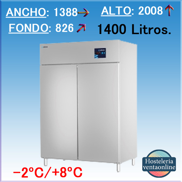 Armario Frigorífico con 2 puertas para pastelería, con estantes de 600X400 mm. y 1400 Litros de capacidad, fabricación exterior e interior en acero inoxidable AISI 304.