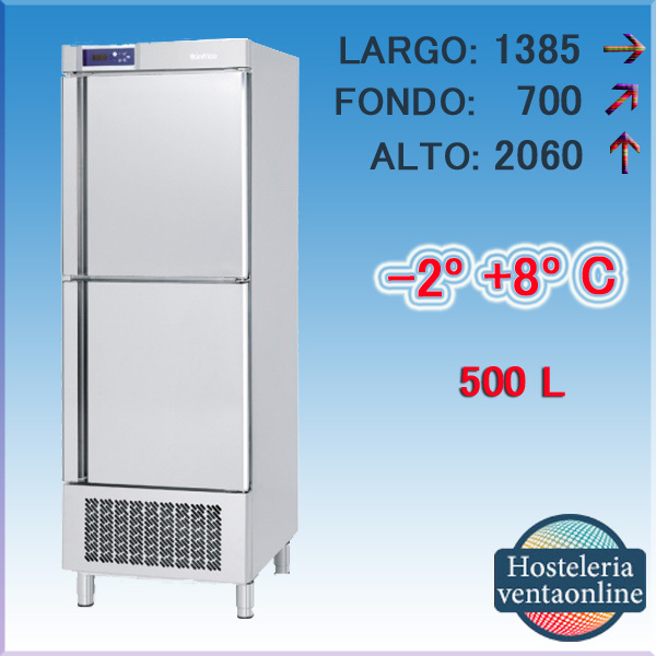 Armario refrigeracion Infrico AN 502 T/F 2 puertas ciegas en vertical, exterior e interior en acero inoxidable AISI 304 respaldo en acero galvanizado.