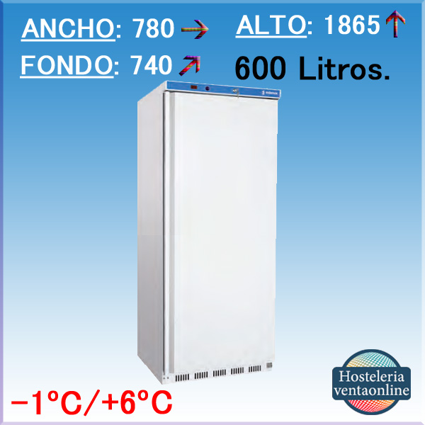 Armario Refrigeración de 1 puerta, con 3 estantes de 650x530 mm. y 600 Litros de capacidad, Puerta reversible con cerradura.