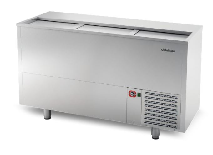 Botellero fabricado por Infrico, de 3 puertas, modelo IEB 150. Construcción en acero inoxidable AISI 430 excepto respaldo en chapa galvanizada. Desagüe interior. Puertas correderas con tirador integrado. Control analógico. 3 puertas y 2 separadores. Capacidad 445 L. Refrigerante R-290 de serie. Rango temperatura de trabajo: +3ºC +6ºC. Excelente relación calidad-precio.
