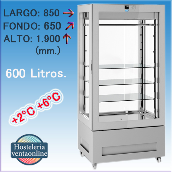Armario Expositor Refrigerado para MADURACIÓN de CARNE, Con las 4 caras de cristal, Capacidad de 600 Litros y temperatura de +2ºC/+6ºC.
