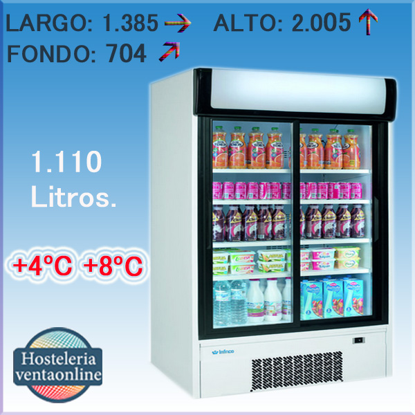 Armario Refrigerado Expositor para bebidas con 2 puertas correderas Infrico ERC 100.