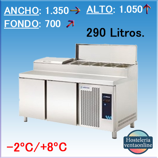 Cuenta con una tapa de acero inox abatible,con dos posiciones de apertura una de 60º y otra de 90º.La refrigeracion de las cubetas se realiza mediante la comunicacion con el mueble inferior.