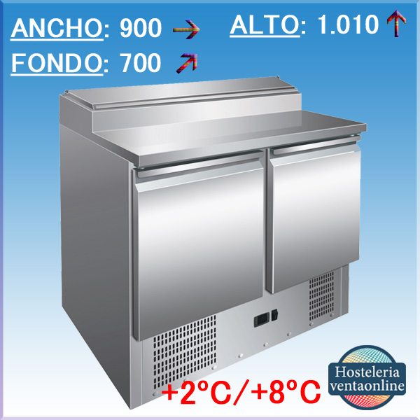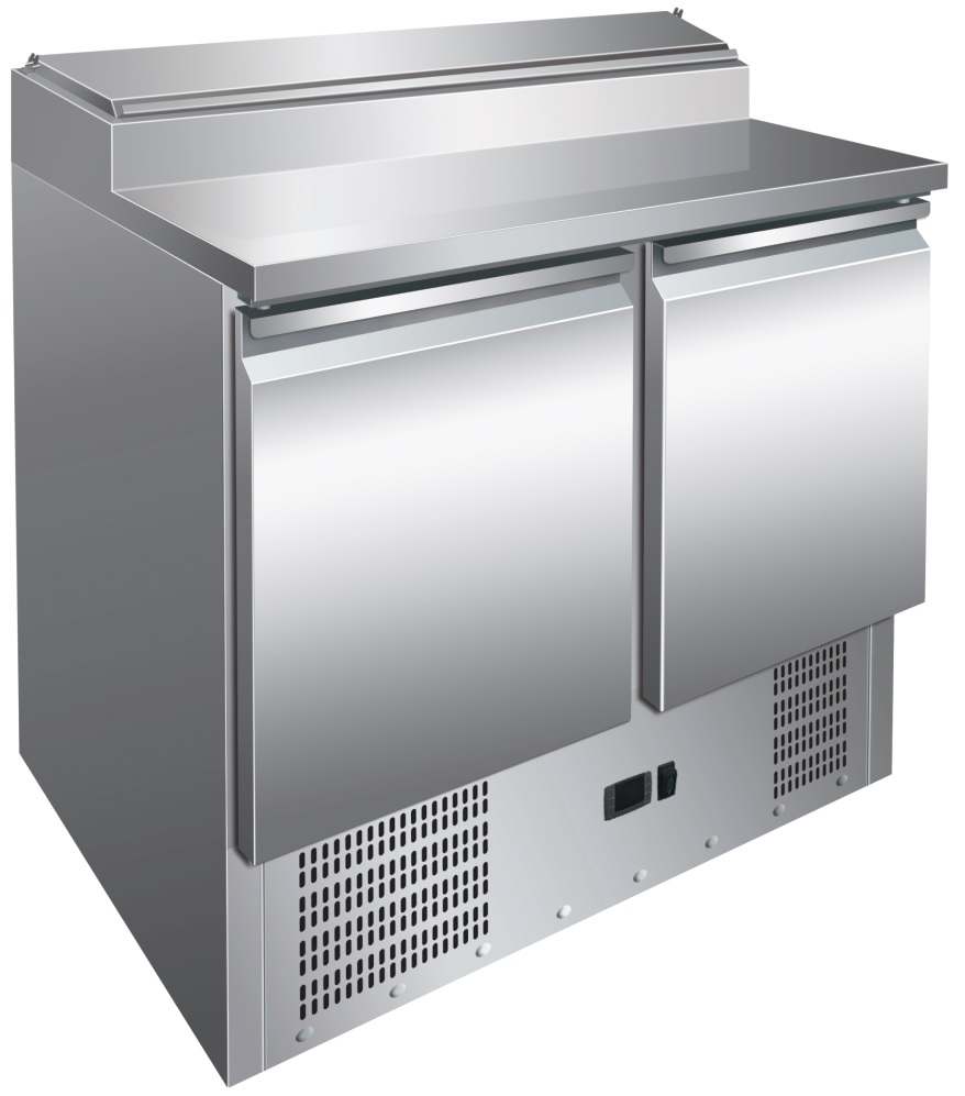Mesa refrigerada para preparación de Ensaladas con cubetas GN 1/6, Fabricada completamente en acero inoxidable para su uso en cocinas profesionales de restaurantes, bares y, en general, negocios de hostelería. Superficie de trabajo en Acero Inoxidable.
