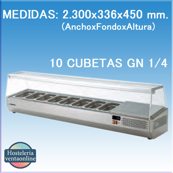 Expositor Refrigerado de ingredientes para ensaladas y pizzas con 10 alojamientos para cubetas GN 1/4.