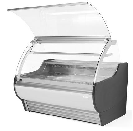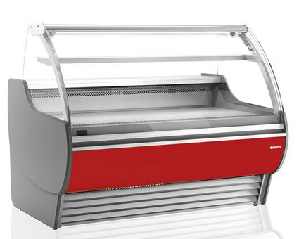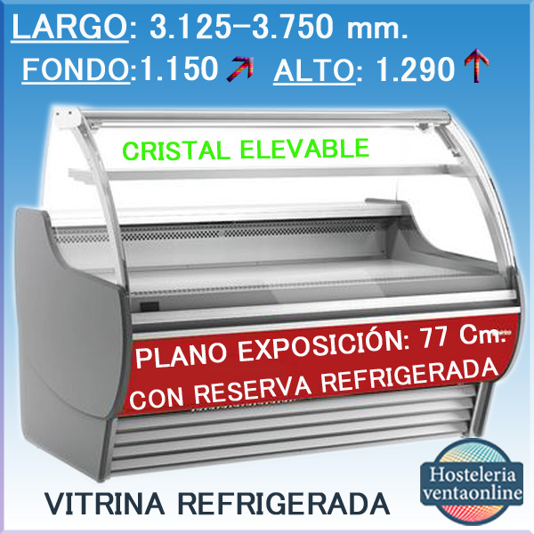 VITRINA CON CRISTAL CURVO, RESERVA REFRIGERADA Y CRISTAL ELEVABLE. SIN UNIDAD CONDENSADORA.MODELOS DE VITRINAS EXPOSITORAS INFRICO SERIE BARCELONA: VBC 31 RU-VBC 37 RU.