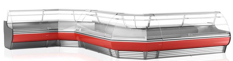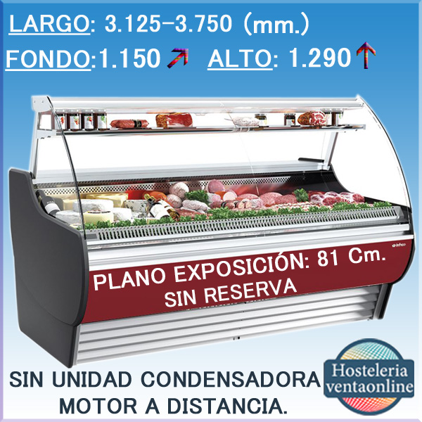 VITRINA CON CRISTAL CURVO, SIN RESERVA REFRIGERADA Y MOTOR REMOTO A DISTANCIA (NO INCLUIDO EN EL PRECIO)MODELOS DE VITRINAS EXPOSITORAS INFRICO SERIE MADRID: VMD 31 SU-VMD 37 SU.