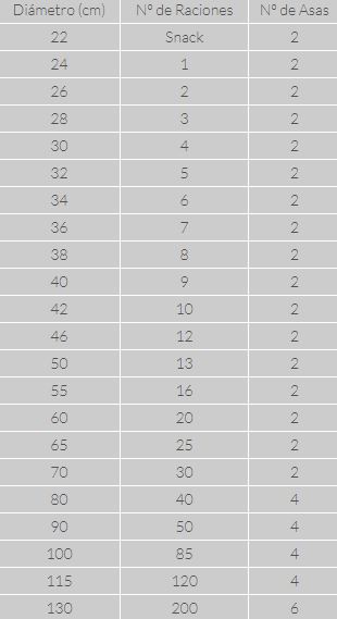 MEDIDAS DISPONIBLES PAELLERA ACERO PULIDO: