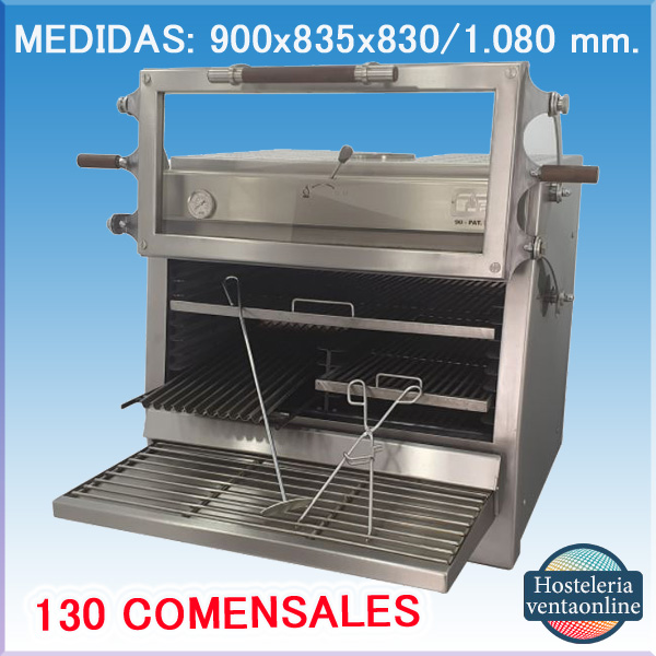 El TIEMPO de encendido de los hornos Pira 90 Lux Inox ED, es de 30 minutos con una carga máxima de carbón de 5 Kg. y el consumo es de 6 Kg. por servicio.