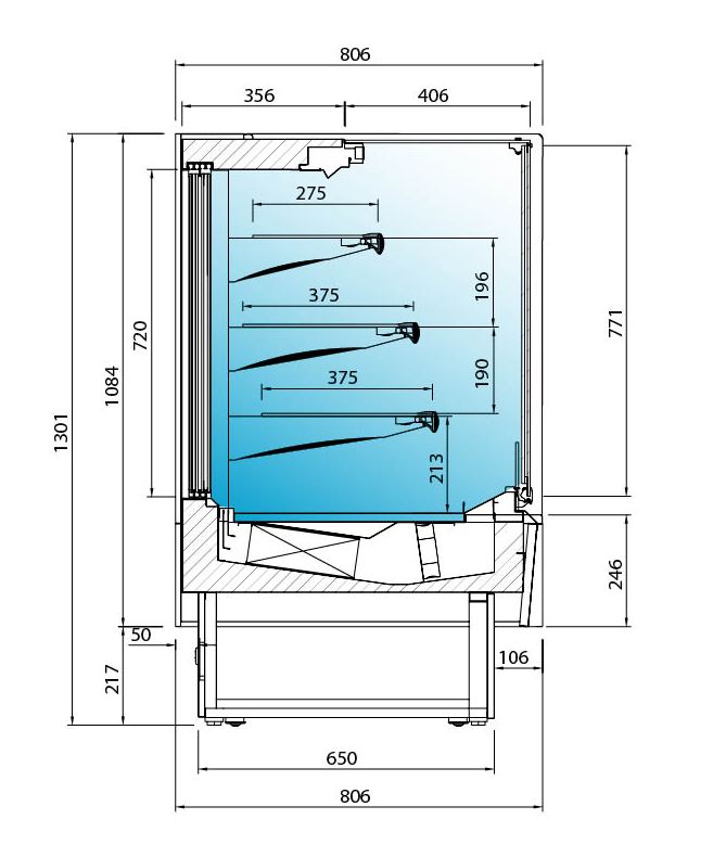 VITRINA PASTELERIA REFRIGERADA CON CRISTAL PLANO Y 3 ESTANTES.MODELOS DE VITRINAS EXPOSITORAS PASTELERAS INFRICO SERIE AMBAR RECTA: VBR 9 PR, VBR 12 PR, VBR 18 PR,