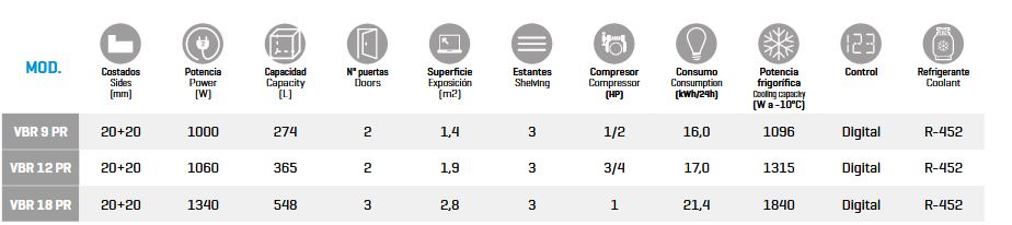 3 MODELOS, CON DISTINTO LARGO DE LA VITRINA AMBAR RECTA:VITRINA EXPOSITORA PASTELERÍA INFRICO SERIE AMBAR RECTA (VBR-PR)