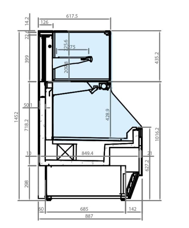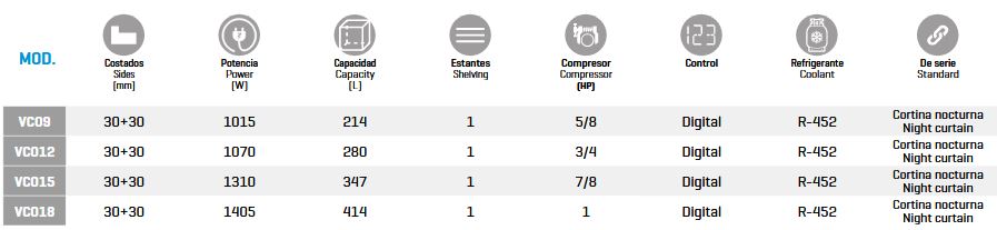 VITRINA PASTELERIA REFRIGERADA CON CRISTAL PLANO ARRIBA Y CORTINA NOCTURNA.MODELOS DE VITRINAS EXPOSITORAS PASTELERAS INFRICO SERIE COMBO: VCO9, VCO12,VCO15,VCO18.