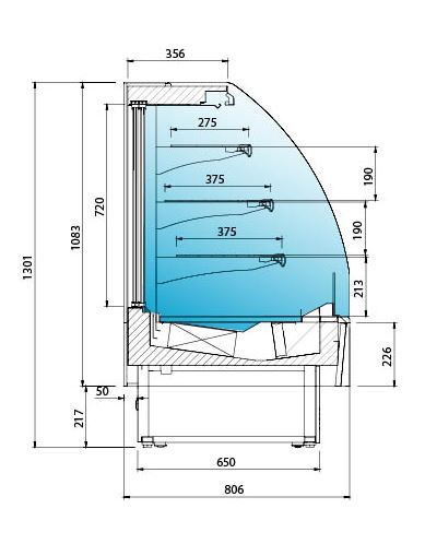 VITRINA PASTELERIA REFRIGERADA DOBLE SERVICIO.MODELOS DE VITRINAS EXPOSITORAS PASTELERAS DOBLE SERVICIO INFRICO SERIE ONIX: VON 9 DS, VON 12 DS, VON 18 DS.