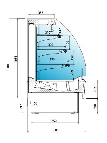 VITRINA PASTELERIA REFRIGERADA AUTOSERVICIO CON 3 ESTANTES.MODELOS DE VITRINAS EXPOSITORAS PASTELERAS AUTOSERVICIO INFRICO SERIE ONIX: VON 6 SS, VON 9 SS, VON 12 SS, VON 18 SS.