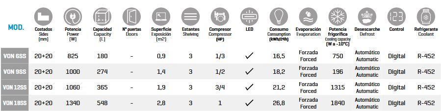 4 MODELOS, CON DISTINTO LARGO DE LA VITRINA ONIX: